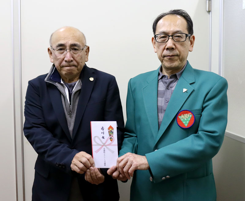 千葉県ボウラーズ連盟(千葉市中央区、堀内幸治理事長)は18日、県内の社会福祉のためにと6万円を千葉日報福祉事業団へ寄託した。9日に開催された「県知事杯争奪 第52回チャリティーボウルフェスティバル」の当日募金や協賛、各ボウリング場などの募金箱に寄せられた浄財を合わせて寄付した。